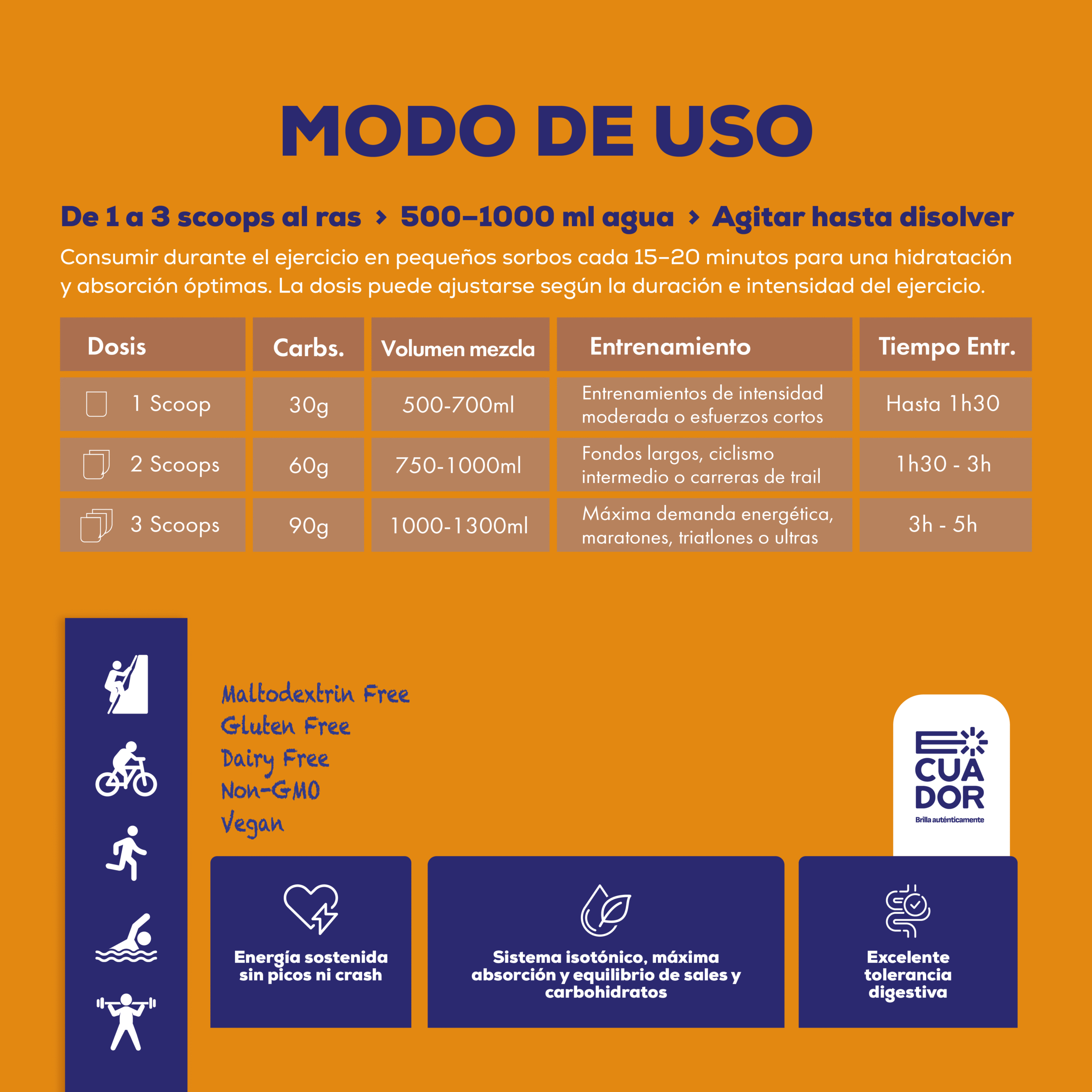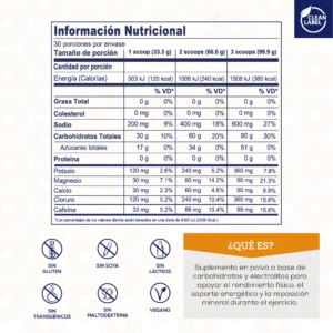 Suplemento en polvo a base de carbohidratos y electrolitos
